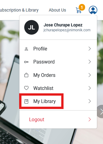 You should see a drop down menu. Click on my Library towards the bottom of the menu: